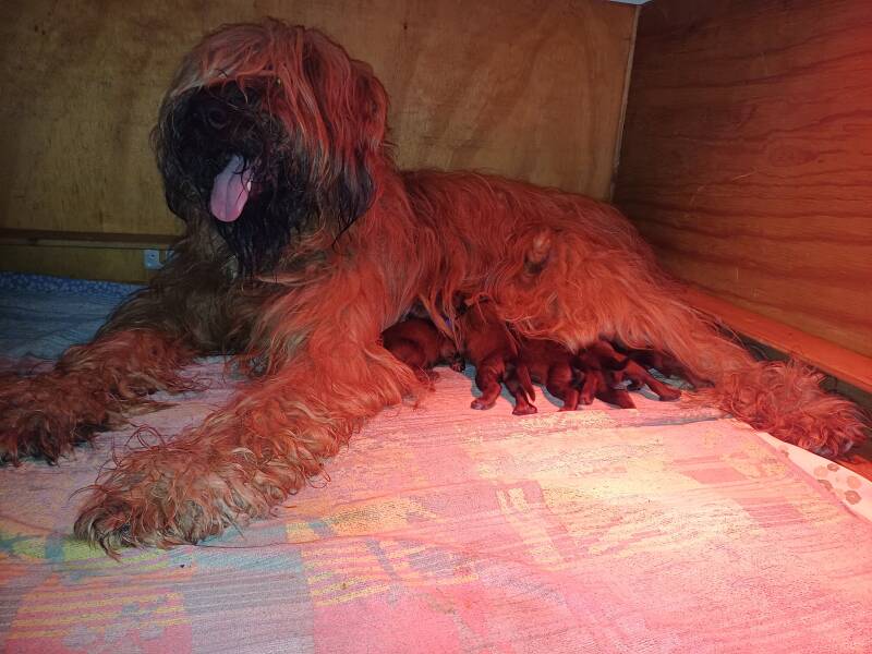 Het ware mooie weken. Wij, Adrie en Jacobien, hebben genoten. Van alle knuffelmomentjes, van alle bezoekjes en verwennerijen van lieve mensen. Het is allemaal voorspoedig gegaan. De bevalling, het opgroeien. Wat heel bijzonder was, was de manier waarop moeder Philou voor haar puppies zorgde. Zo goed, zo zelfstandig en zo zorgzaam. Wat was het mooi om hier bij te zijn. We stonden iedere keer versteld, als ze 's avonds nog even een knuffeltje bracht bij de puppies. Hoe lief ze speelde en zichzelf eigenlijk helemaal vergat. We hadden dit voor geen goud willen missen en zijn blij dat we een mooie pup aanhouden. Jolie wordt het nieuwe speelmaatje van Philou. Leuk om te zien hoe ze nu samen optrekken. Soms wat wild en soms heerlijk knus bij elkaar. Wat een voorrecht om twee briards in huis te hebben met zo'n mooi karakter. We gaan er zeker nog heel veel van genieten.